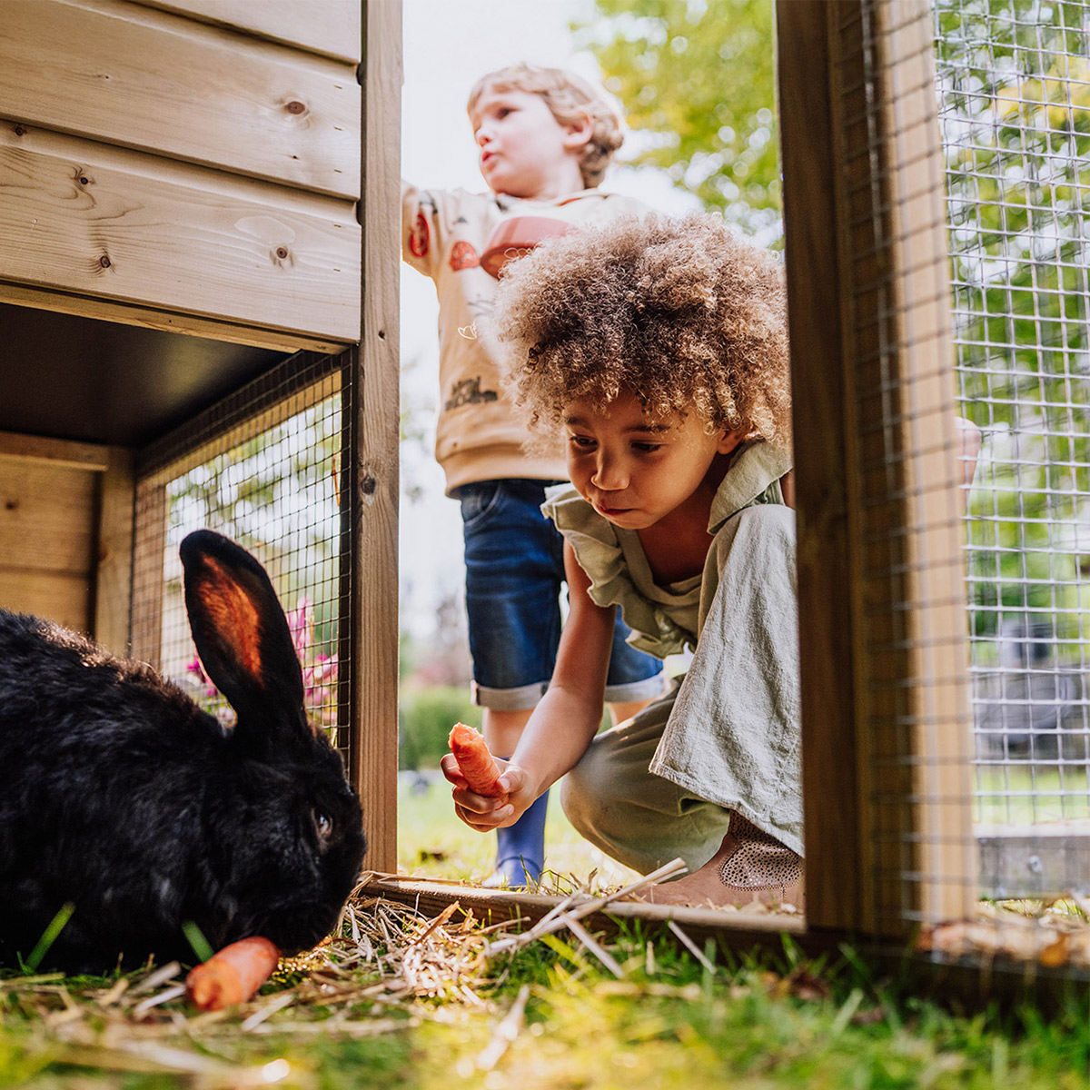 Die Pflege von Hühnern oder Hasen wird zu einem praktischen Erlebnis, das Kindern Verantwortung, Einfühlungsvermögen und Respekt gegenüber Tieren und der Natur vermittelt.